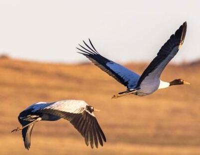 黑颈鹤飞抵云南大山包越冬