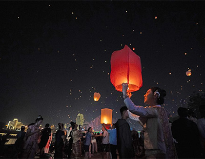 澜沧江畔孔明灯点亮夜空