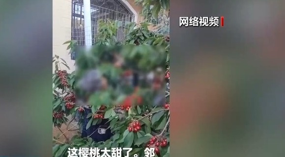大连市公安局网络安全保卫支队二大队民警刘家豪:这名网友在视频中声称邻居家的老太太时不时地来自己家偷樱桃,并且现场质问了这名老人,还出现了言语争执和一些肢体摩擦的场景。在视频的明显位置,他还标注了一些老人偷樱桃的文字。