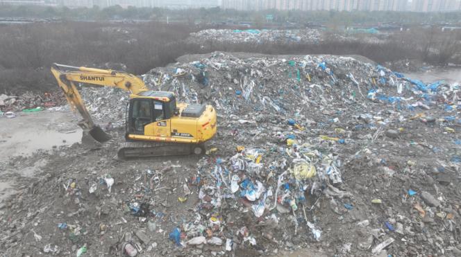 2024年2月29日,督察组暗查发现,上瑞环保科技有限公司大量建筑垃圾与生活垃圾混堆。图源:生态环境部