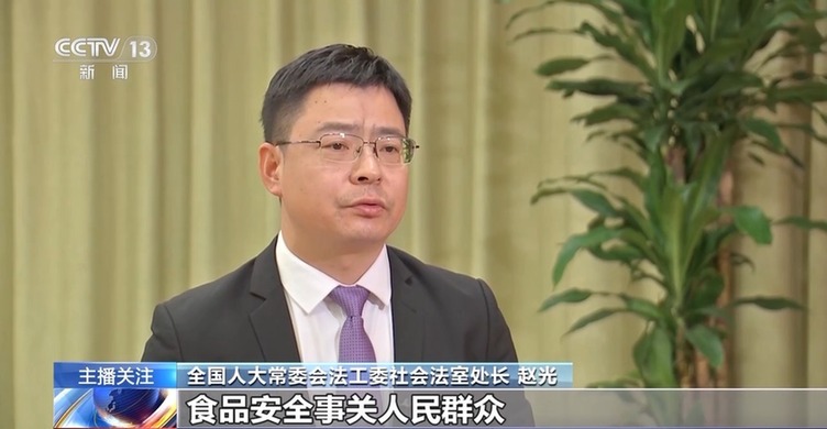 全国人大常委会法工委社会法室处长赵光:食品安全事关人民群众,身体健康和生命安全是重大的民生问题。2025年修改食品安全法,聚焦重点液态食品道路散装运输和婴幼儿配方液态乳监管两个突出问题,从加强准入管理和过程监管、完善法律责任等方面,对食品安全法作了有针对性的修改完善,为相关领域食品安全工作提供法律保障,确保人民群众"舌尖上的安全"。