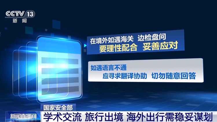 国家安全机关提示,因学术交流、参加会议或个人旅行需出境时,请注意检查证件有效期,合理安排行程,并严格遵守高校的出国(境)管理制度,依规履行报批、报备程序。