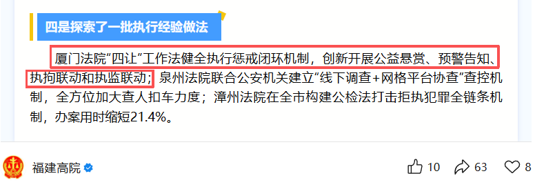 厦门法院“四让”工作法健全执行惩戒闭环机制获省法院通报肯定;16件2025年度福建法院执行典型案例中,厦门法院3件入围,入围数居全省首位。