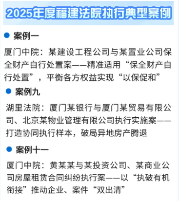 近日,福建省法院召开新闻发布会,通报全省法院开展“八闽‘执’击·惠民安商”百日执行攻坚行动及2025年执行工作情况,并公开发布2025年度福建法院执行典型案例。