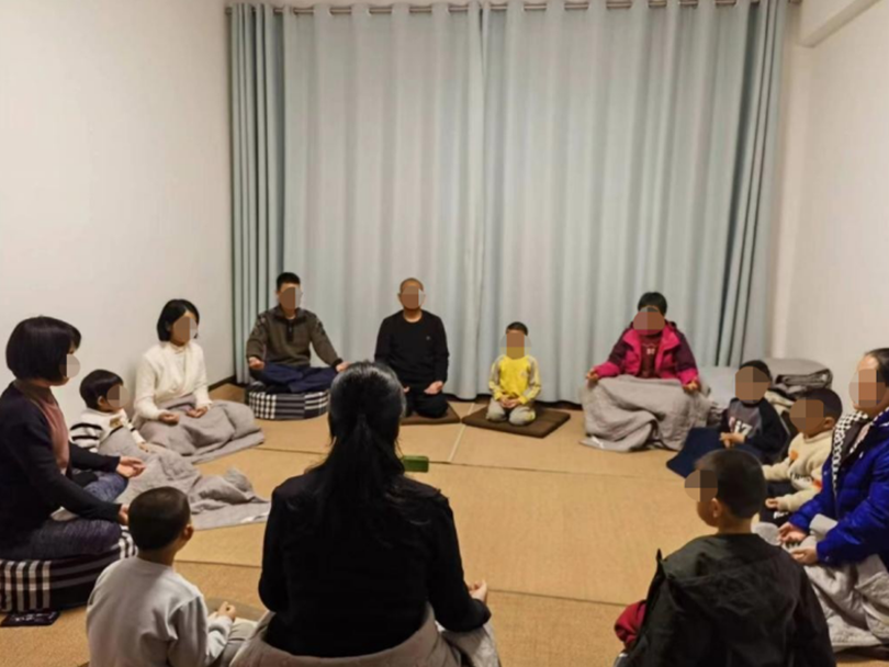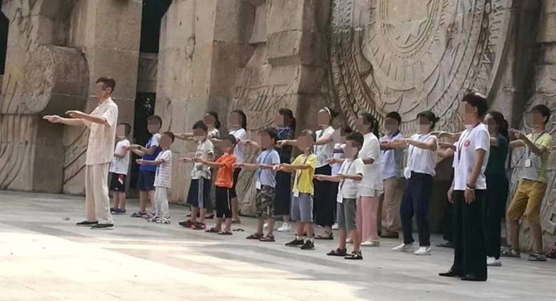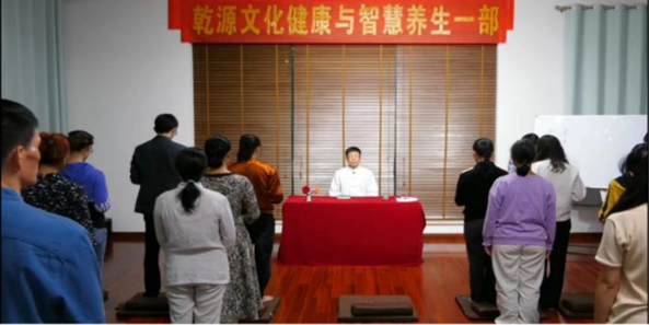 ▲家长带着孩子参加“乾源文化”打坐练功