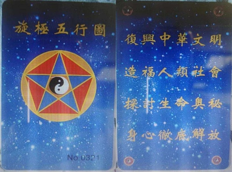 ▲“乾源文化”非法组织销售的“旋极五行”图卡,声称此卡“具有宇宙能量”,可以帮助学员提升自我