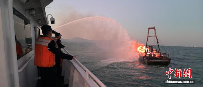 2025年11月,海警扑救海上失火船舶。广东海警局供图