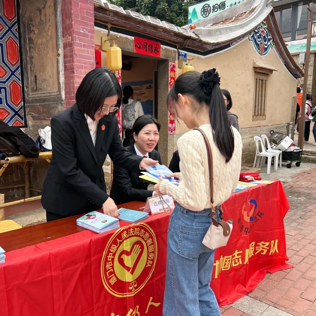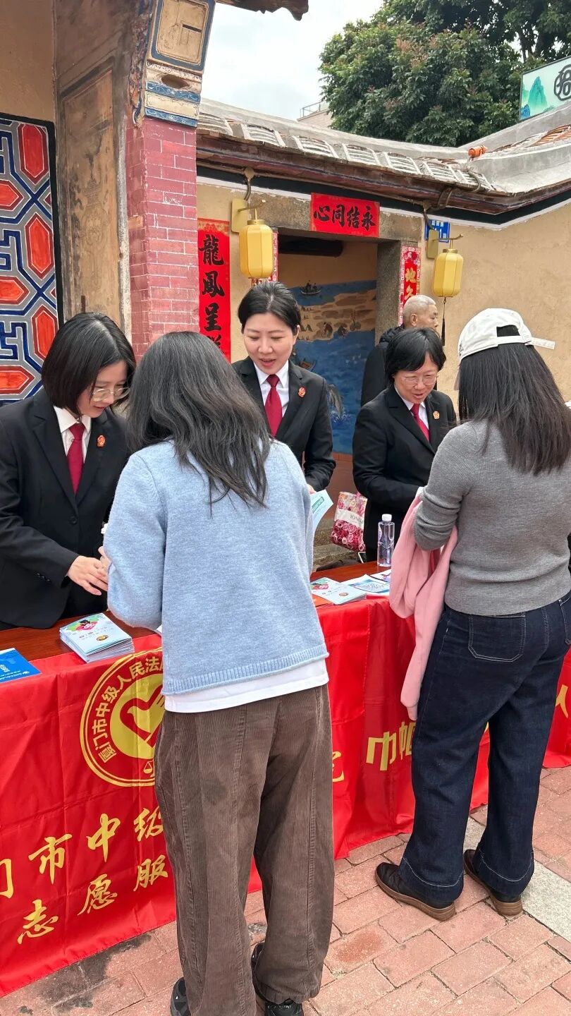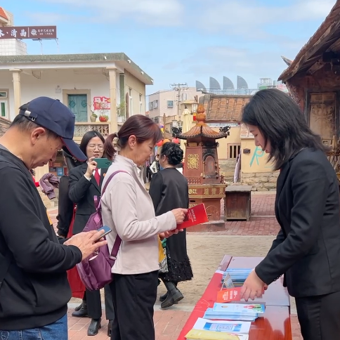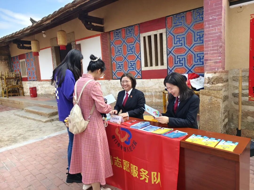 走出村史馆,女干警们迅速切换“普法宣传员”身份,在古厝广场开展普法宣传志愿服务。