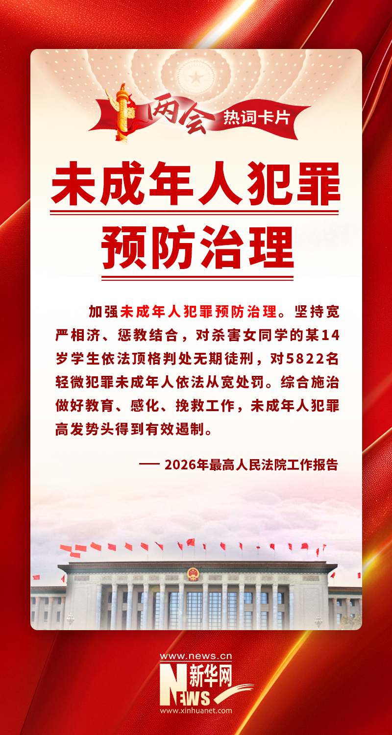 强化未成年人违法犯罪预防和治理,建立未成年人罪错行为分级干预矫治体系,统筹推进矫治教育、专门教育和专门矫治教育工作。(2026年中央政法工作会议)