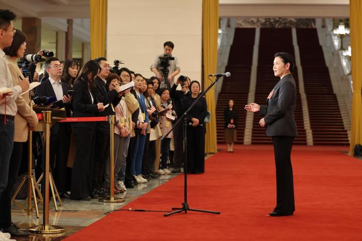 3月12日,第十四届全国人民代表大会第四次会议第三场“部长通道”集中采访活动在北京人民大会堂举行。这是司法部部长贺荣接受媒体采访。新华社记者金立旺 摄