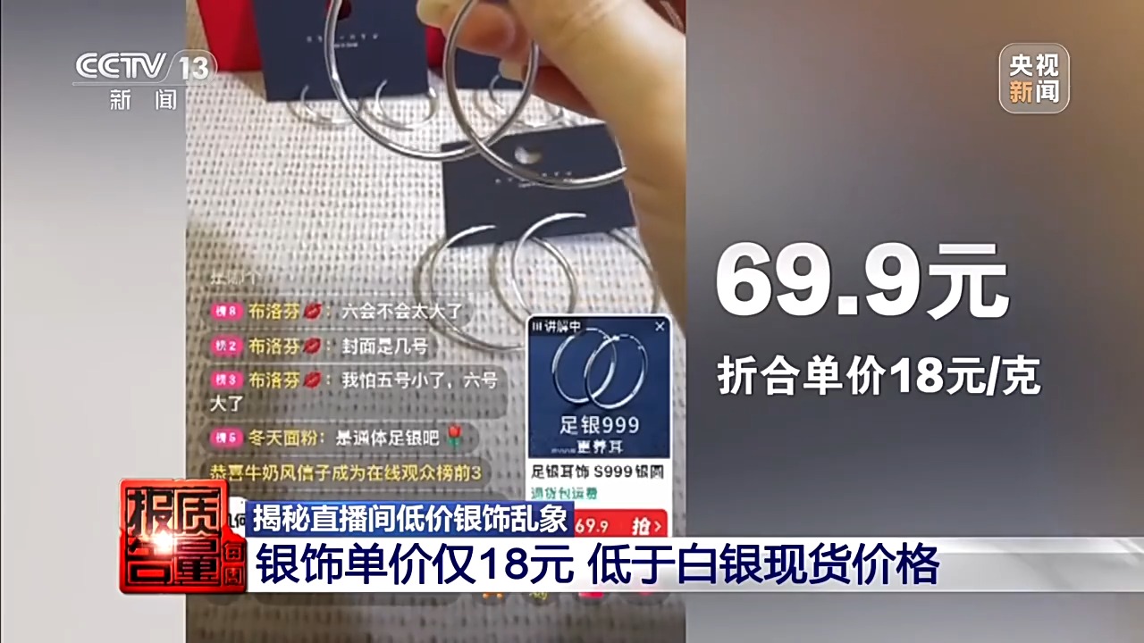 在白银价格高位运行的当下,网络直播间内,不少商家借势推出了低于行情单价的“福利价”、“清仓价”,诱导消费者下单。然而,满心期待的 “捡漏”往往变成了“踩坑”。这种远低于原材料成本的所谓“足银饰品”,真相到底如何?市场的乱象之下,究竟是谁在浑水摸鱼?