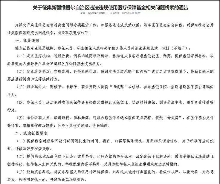 正在阅读:各地公开征集违法违规使用医保基金线索 最高奖励20万元