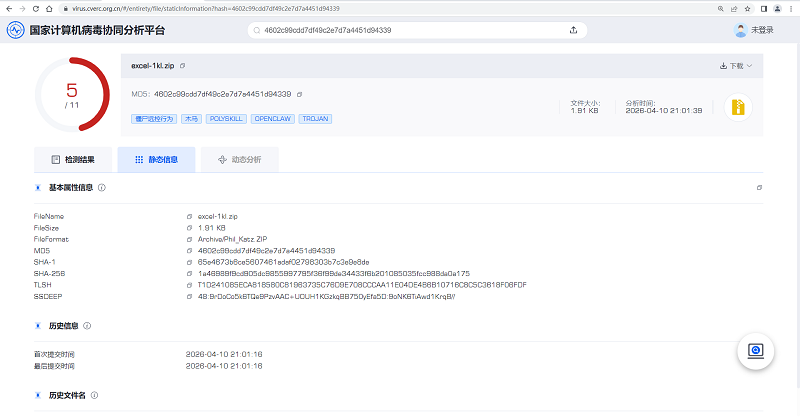 近期,仿冒“龙虾”(OpenClaw)智能体安装包、技能包传播计算机病毒的网络攻击活动持续活跃,用户应提高警惕,个人和单位用户均可访问国家计算机病毒协同分析平台(https://virus.cverc.org.cn),对可疑安装包文件、可执行文件、技能包文件或解压后技能包中的可疑文件进行安全性检测。